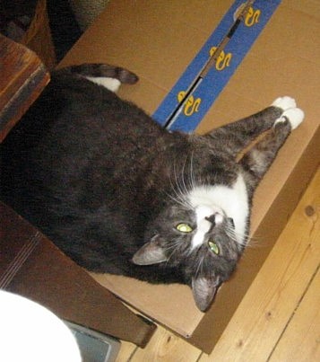 Skrållan setzt sich ja gerne mal auf den Karton, wenn Pelle drin kruschtelt, und läßt ihn nicht mehr raus.....
