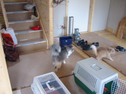 Da sind sie! Bereits ein paar Minuten aus dem Kennel und die erste Runde im EG wurde auch schon absolviert, d.h. der Bereich links von der Treppe, das Wohnzimmer, wurde inspiziert.