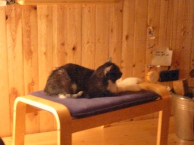 Die erste hat das Kaminfeuer entdeckt: Smilla räkelt sich so nah es irgend geht.....