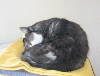 Etwas später: nun wird wieder allein geschlafen, auf dem begehrten Platz an der Heizung.