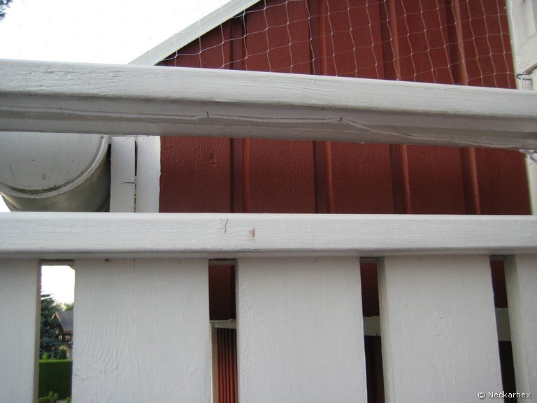 Das Netz reicht bis zur oberen Brüstung, auch, um das Geländer später besser nachstreichen zu können.