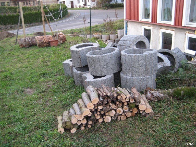 Das Terassengehege von außen. Die Litzen für den Elektrozaun sind bereits abmontiert.