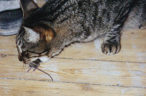 Morbide Bilder, ich weiß, aber wann kriegt man schonmal so gut zu sehen, wie eine Katze eine selbstgefangene Maus frißt?