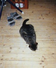 Smilla hat schon wieder das Nachsehen: sie hat eine Maus mitgebracht, die Arradon ihr abgejagt hat. Nun schaut sie ihm zu, wie er die Maus wegknurpst.
