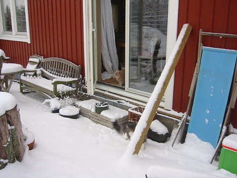 Nun hält auch Skrållan mal die Nase nach draußen, während Pelle sich sage und schreibe zwei Schritt weitergetraut hat.