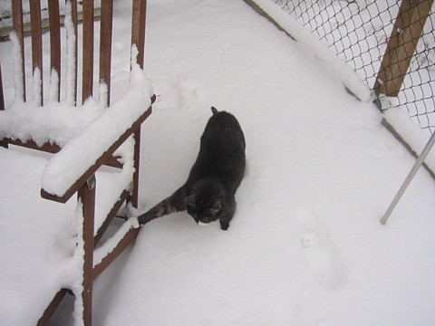 Smilla dreht doch noch eine Runde, versucht dabei aber den Kontakt mit dem Schnee möglichst zu vermeiden. Hier ist der Schnee aber auch besonders tief, sie versinkt bis fast zur ganzen Beinlänge darin.
