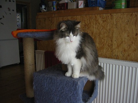 Kleiner Schneekater.... an Bauch und Brust hängen richtig dicke Schneeklumpen. Er selbst ist mollig warm und quietschvergnügt, aber so ein Hüngerli zwischendurch..... das kann mal vorkommen.
