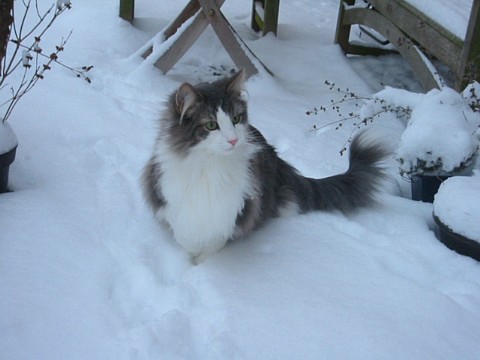 Er fühlt sich offensichtlich wohl, so mitten im Schnee.